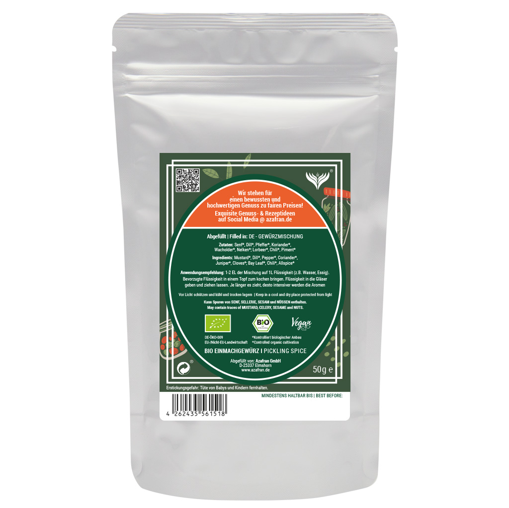 Einlege Gewürz im wiederverschließbaren Aromabeutel (à 50 Gramm) verpackt (Versandkostenfrei innerhalb von Deutschland geliefert).