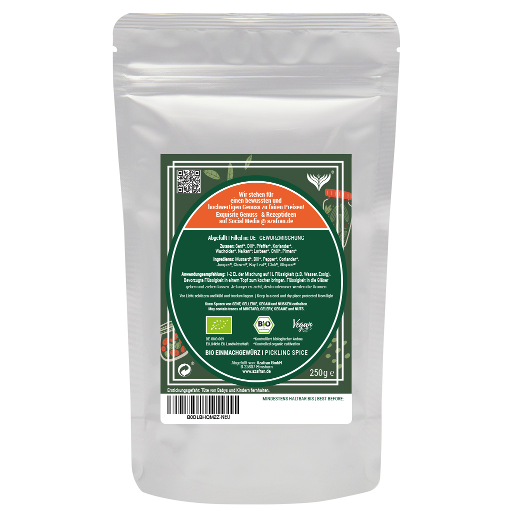 Einlege Gewürz im wiederverschließbaren Aromabeutel (à 250 Gramm) verpackt (Versandkostenfrei innerhalb von Deutschland geliefert).