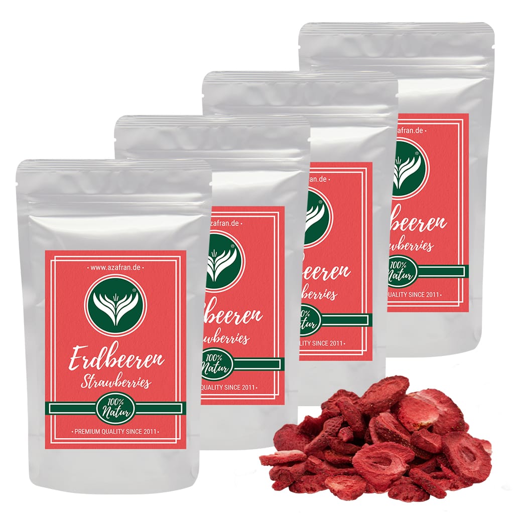 Unsere gefriergetrockneten Erdbeeren stammen aus verschiedenen Ländern weltweit (verarbeitet werden Erdbeeren z.B. aus Polen, China, Peru, Ägypten etc.) und eignen sich besonders für Tee, Müsli, Smoothies, zum Backen oder für Desserts.