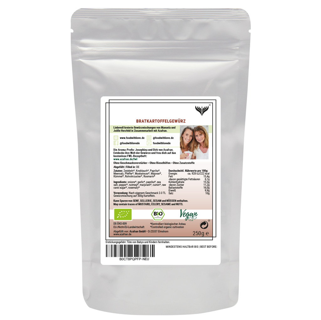 Bei unserem Bratkartoffel Gewürz Pulver handelt es sich um einen Gewürzklassiker aus der aktuellen Food with Love Gewürzkollektion, bestehend aus hochwertigen BIO Zutaten.
