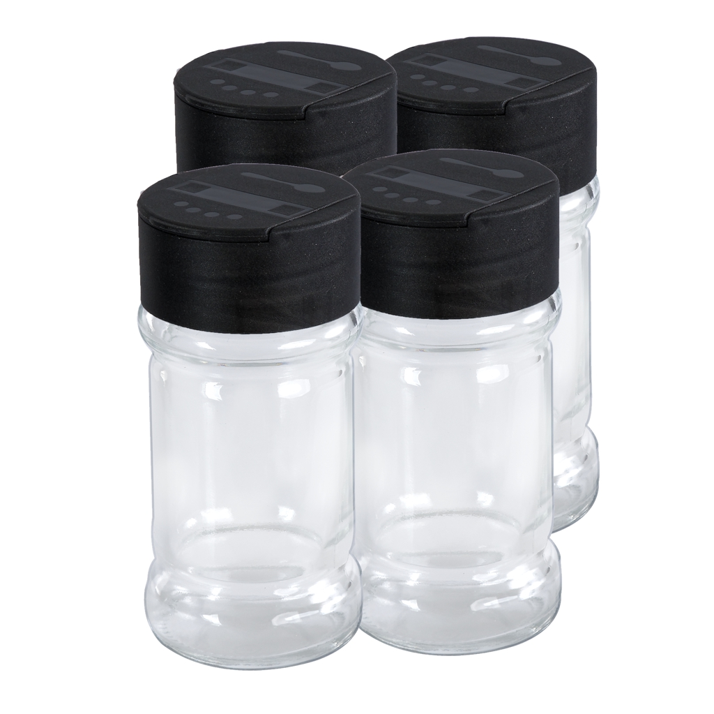 Das Gewürzglas Set eignet sich ideal für Gewürze und Kräuter. Jedes Glas besteht aus einem Streuer und einer Groböffnung.