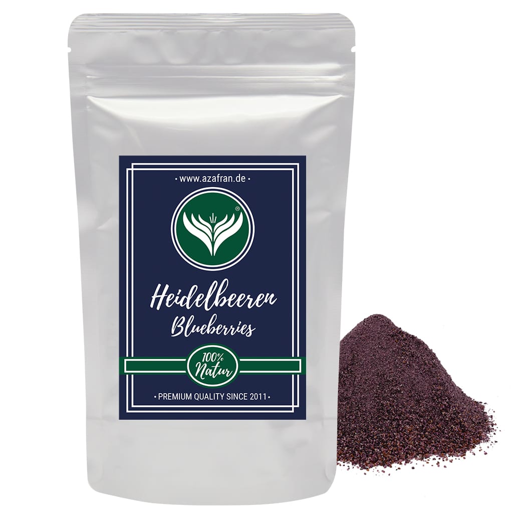 Heidelbeerpulver im Aromabeutel (à 250 Gramm) verpackt (Versandkostenfrei innerhalb von Deutschland geliefert).