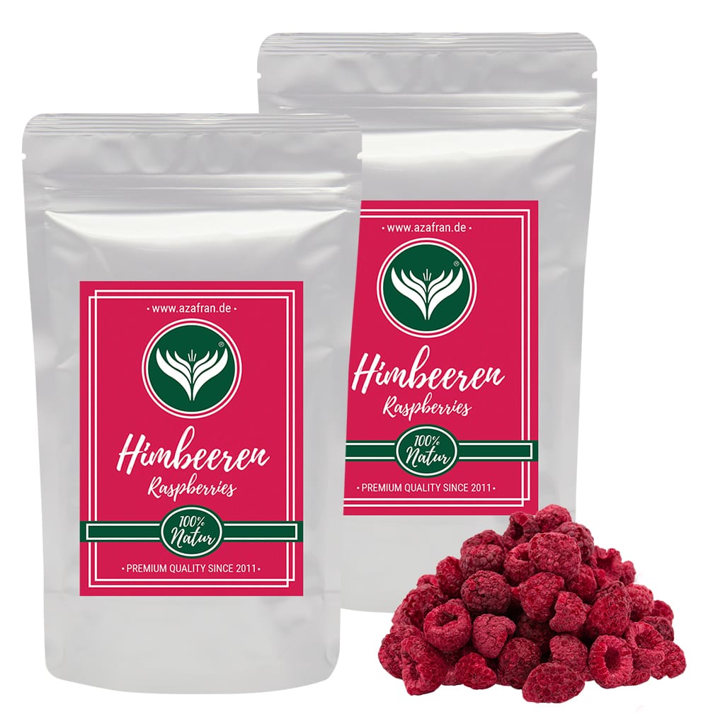 Unsere gefriergetrockneten Himbeeren stammen aus verschiedenen Ländern weltweit (z.B. aus Polen, China, Peru, Ägypten etc.). Sie eignen sich besonders gut für die Zubereitung von Tee, Müsli, Smoothies, zum Backen oder für Desserts.