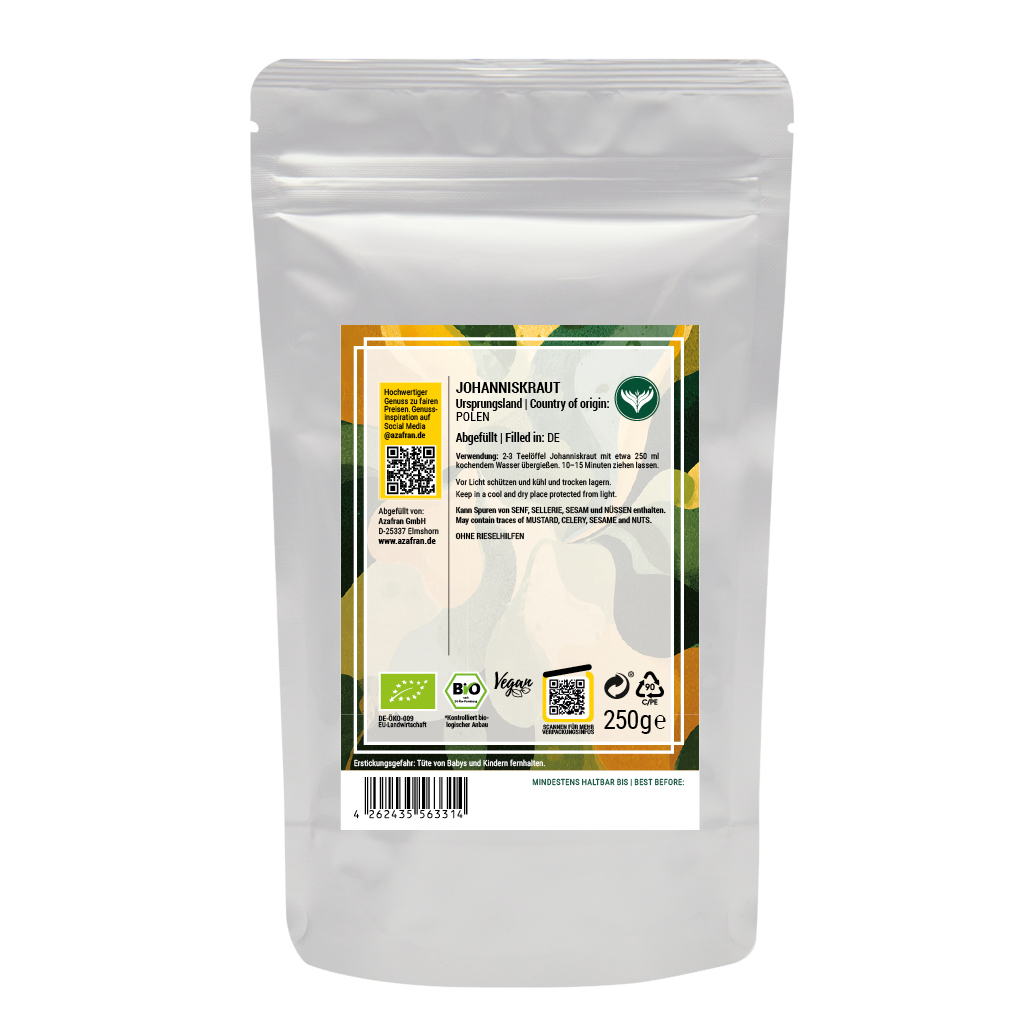 BIO Johanniskraut geschnitten im Aromabeutel (à 250 Gramm) verpackt (versandkostenfrei innerhalb von Deutschland geliefert).