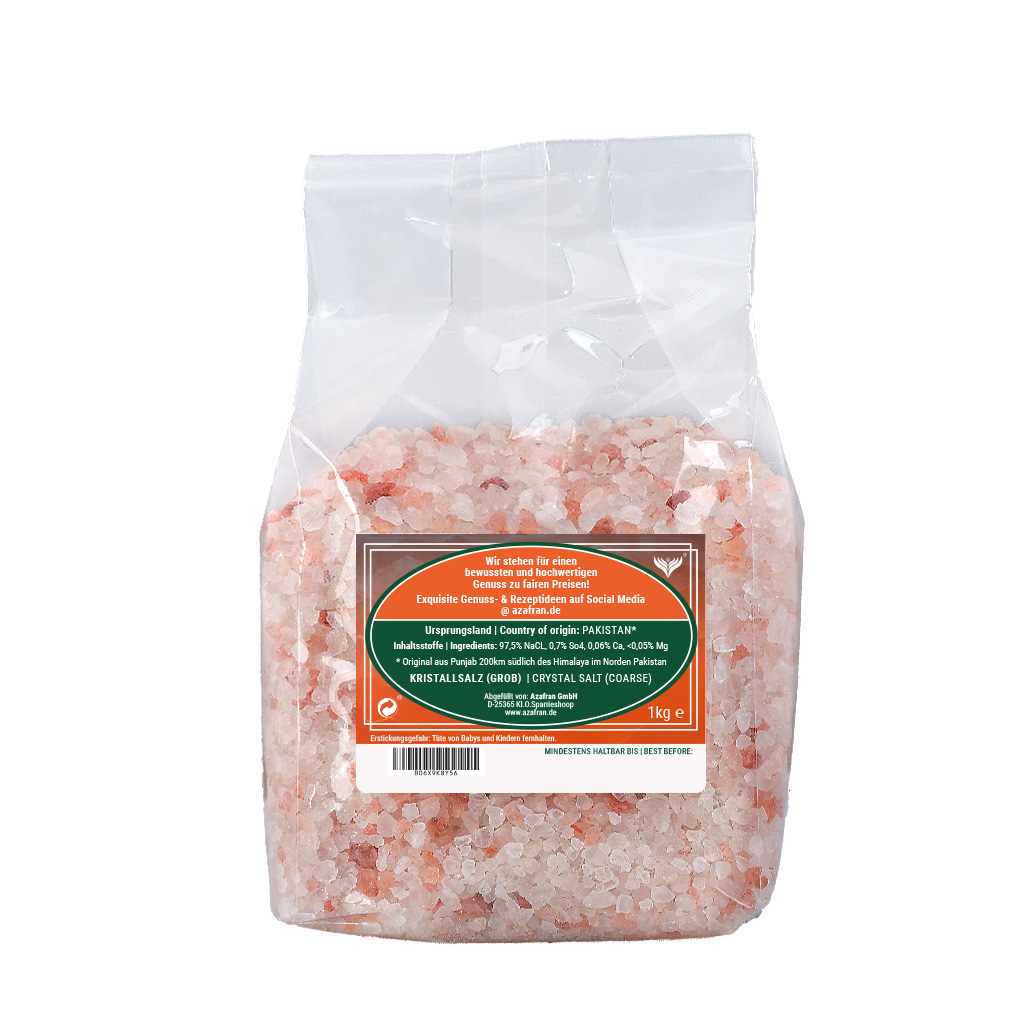 Edles rosa Kristallsalz im PE-Beutel (à 1kg) verpackt (Versandkostenfrei innerhalb von Deutschland geliefert).