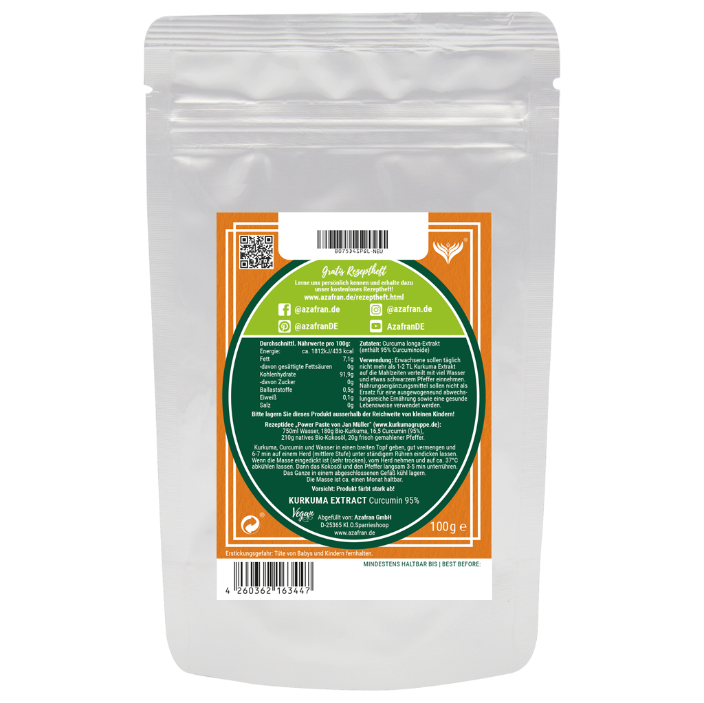 Kurkuma Extrakt im wiederverschließbaren Aromabeutel (à 100 Gramm) verpackt (Versandkostenfrei innerhalb von Deutschland geliefert).