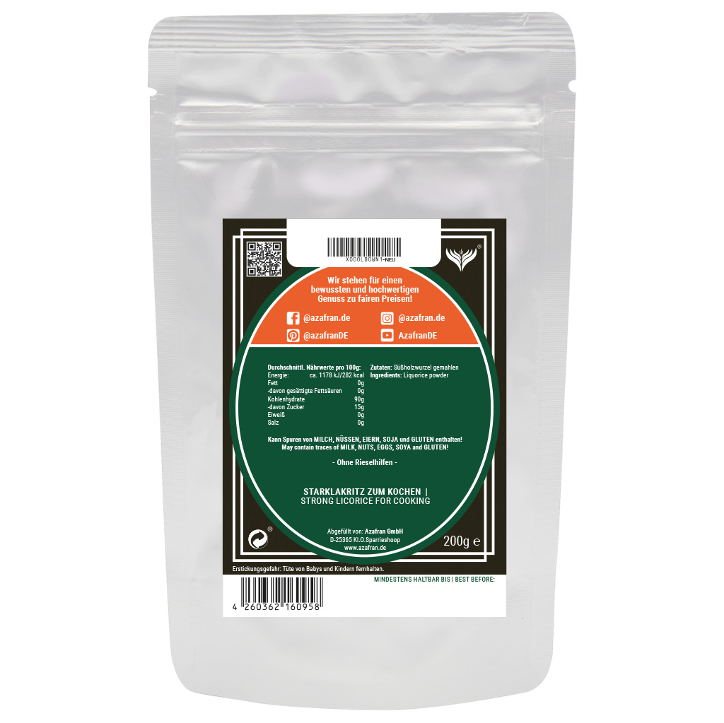 Selbst wenn Sie kein wirklicher „Lakritzfreund" sind, kann Ihnen dieses Pulver schmecken, da es kein Salmiak enthält und eher süßlich im Geschmack ist.