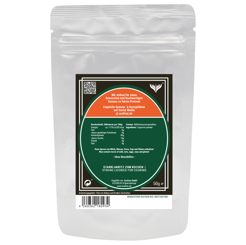 Selbst wenn Sie kein wirklicher „Lakritzfreund" sind, kann Ihnen dieses Pulver schmecken, da es kein Salmiak enthält und eher süßlich im Geschmack ist.