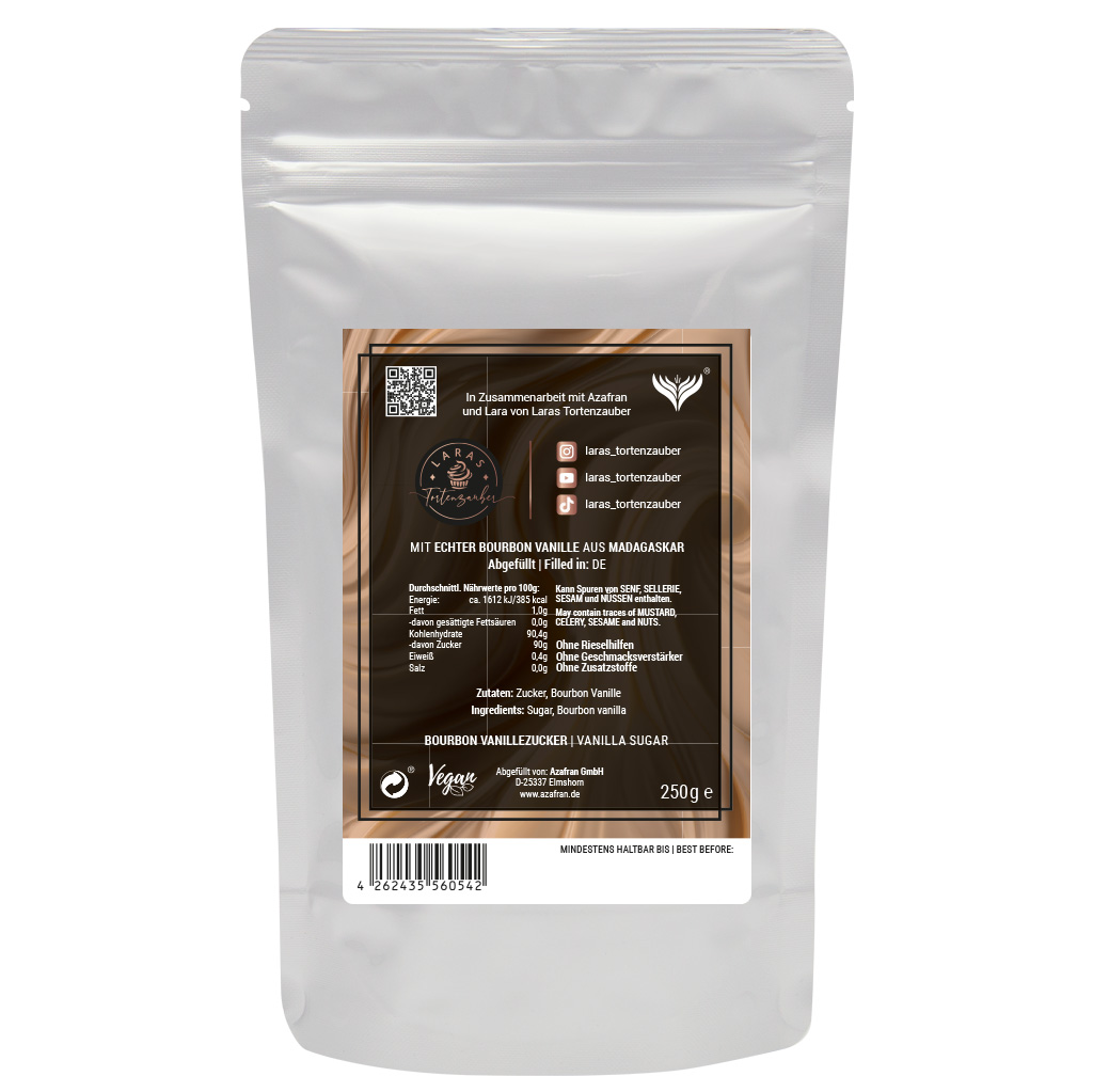 Bourbon Vanillezucker in Kooperation mit Lara von Laras Tortenzauber im Aromabeutel (à 250 Gramm) verpackt (Versandkostenfrei innerhalb von Deutschland geliefert).