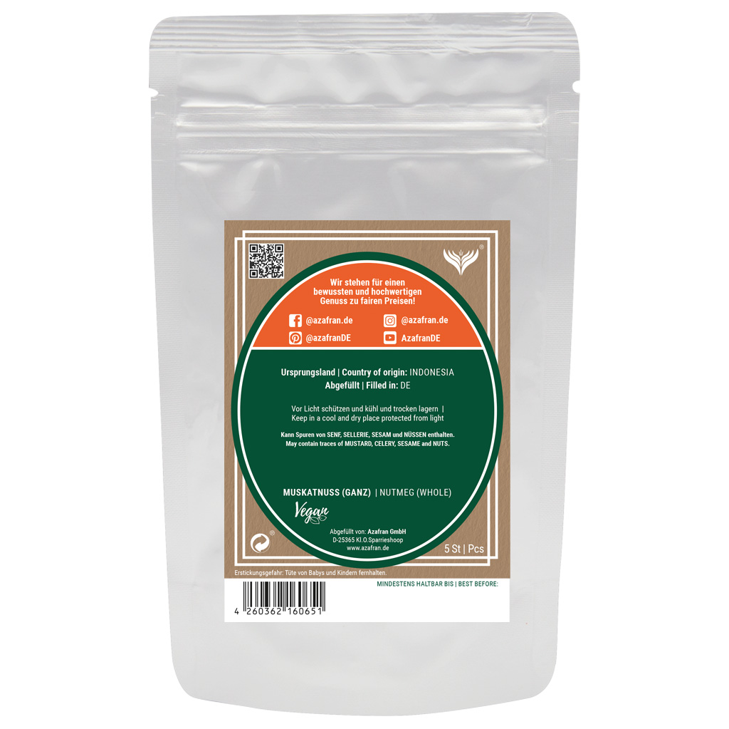 Ganze Muskatnüsse im Größe 60/65 bis 80/85 im Aromabeutel (à 5 Stk) verpackt (Versandkostenfrei innerhalb Deutschland geliefert).