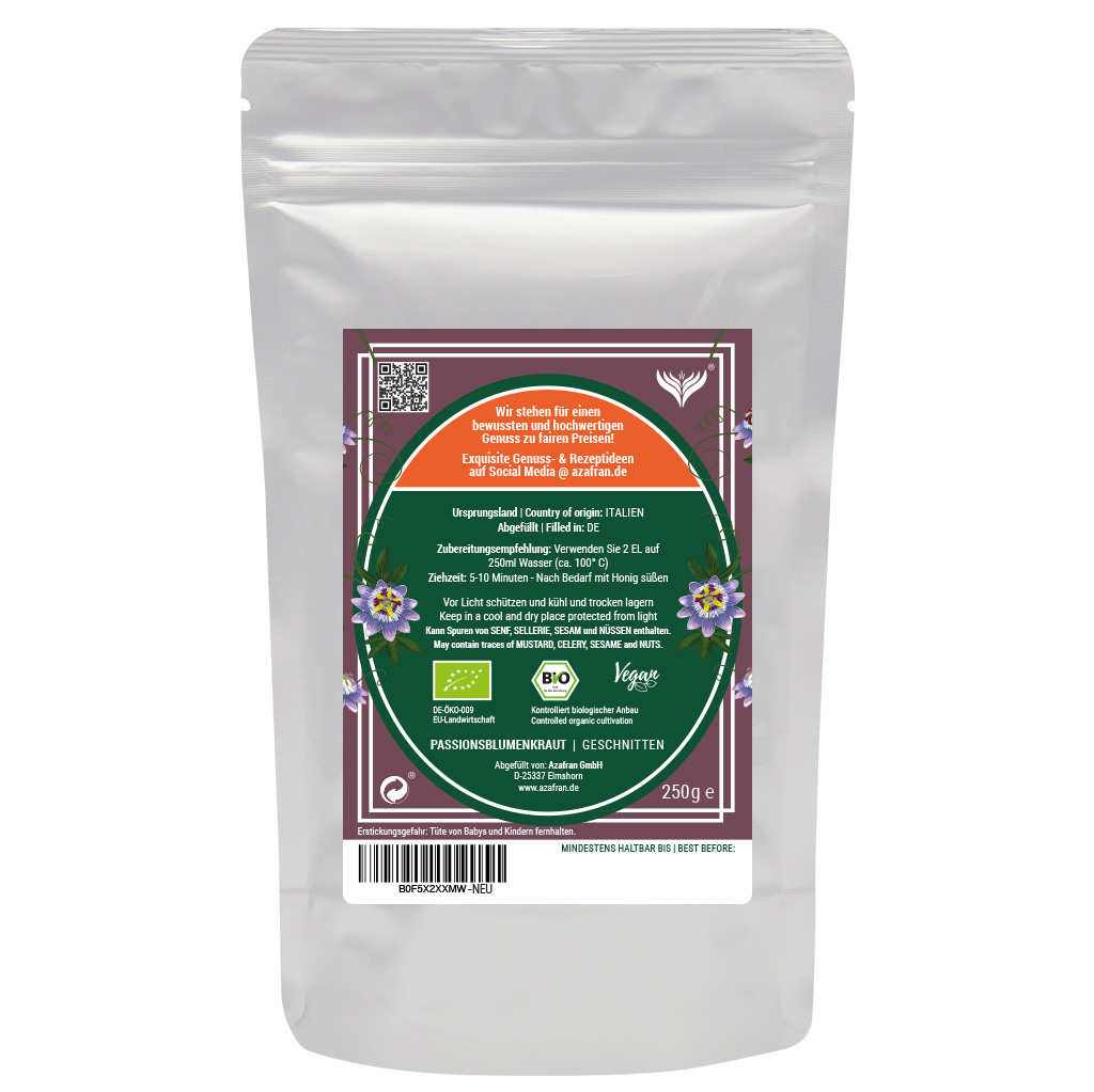 Passionsblumenkraut im wiederverschließbaren Aromabeutel (a 250 Gramm) verpackt (Versandkostenfrei innerhalb von Deutschland geliefert).