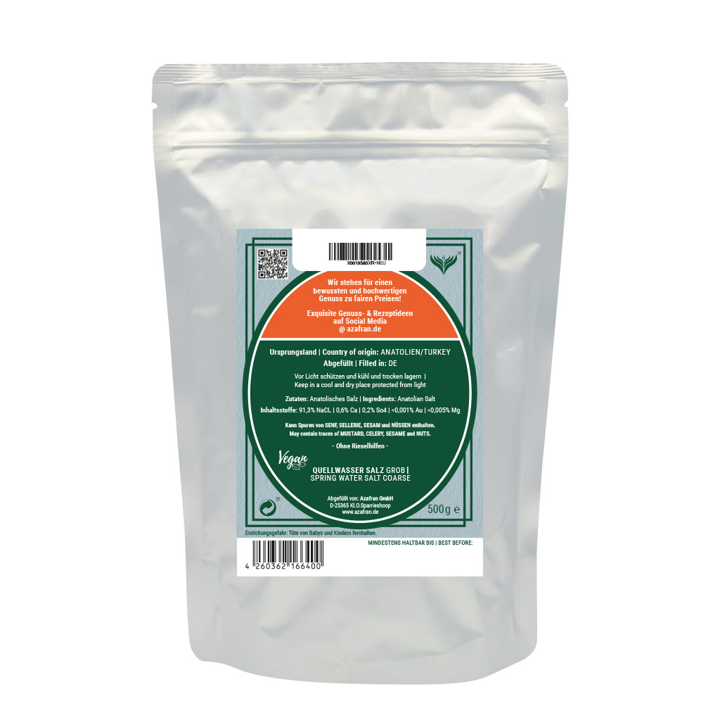 Quellwassersalz (grob) im Aromabeutel (à 500 Gramm) verpackt (Versandkostenfrei innerhalb von Deutschland geliefert).