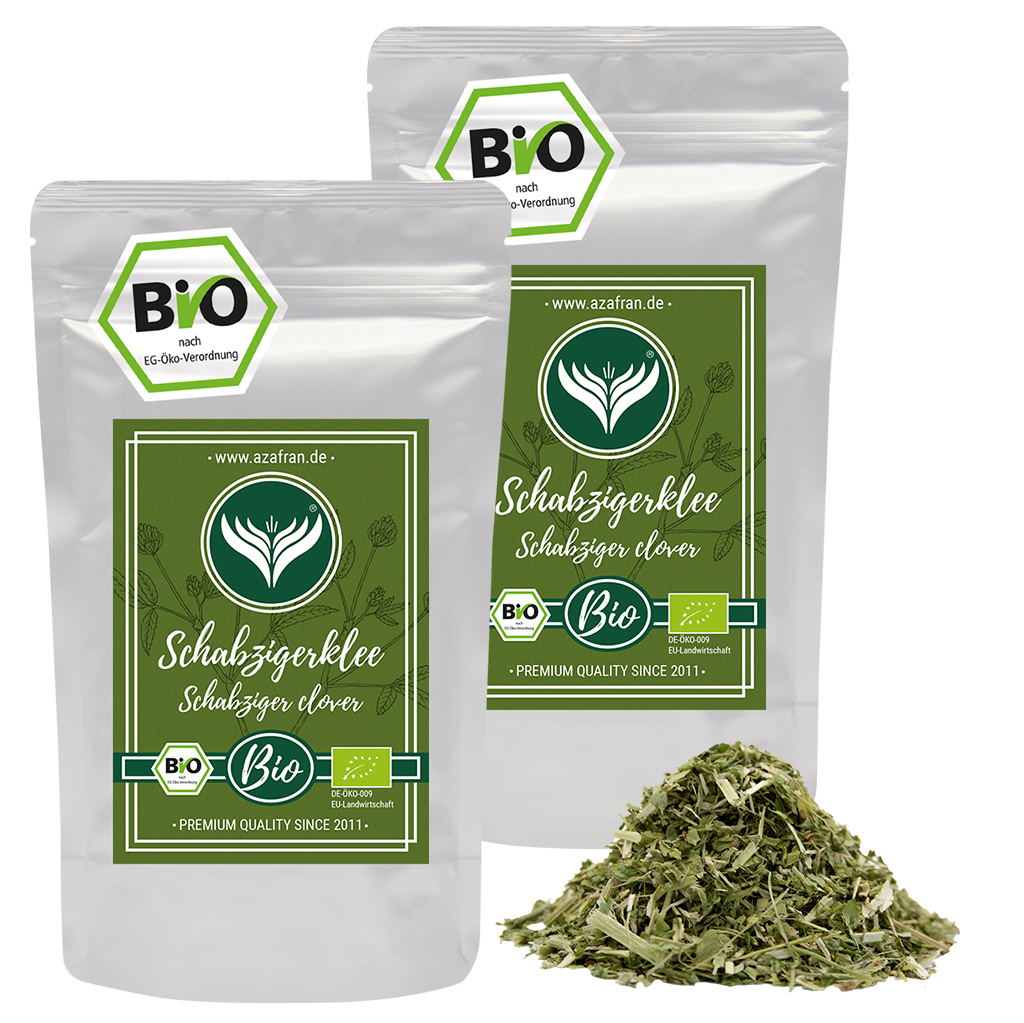 Schabziger Klee im wiederverschließbaren Aromabeutel (a 250 Gramm) verpackt (Versandkostenfrei innerhalb von Deutschland geliefert).