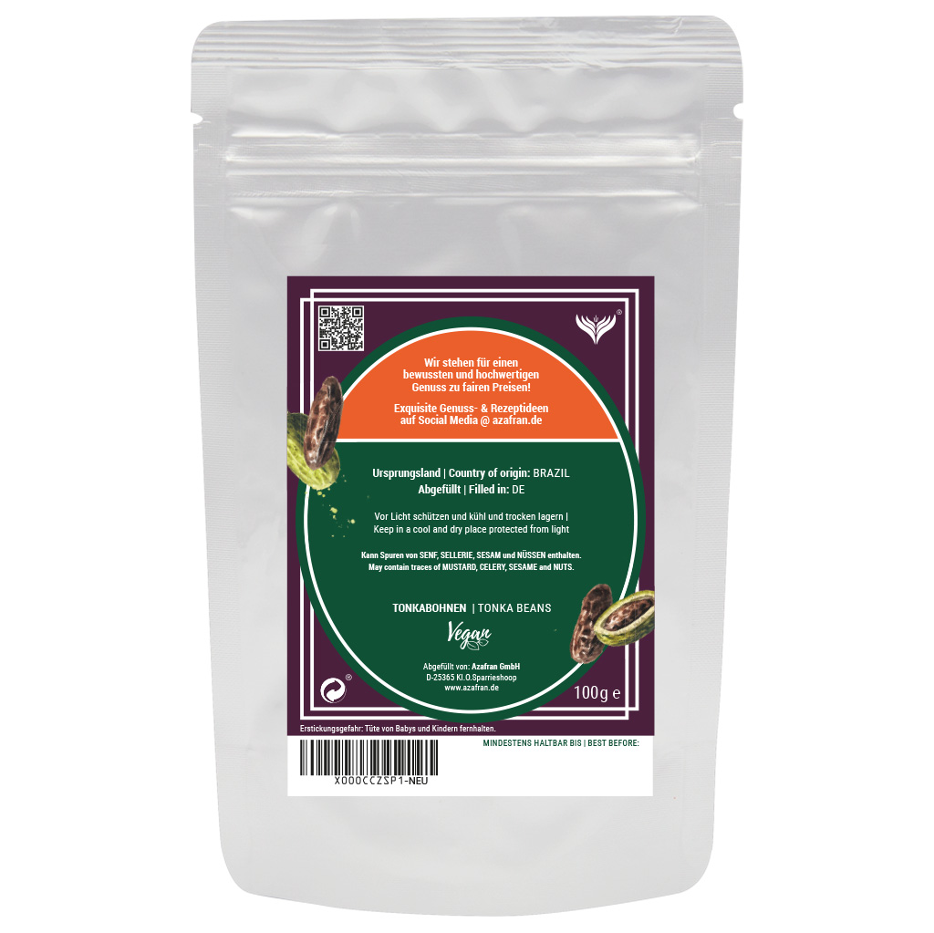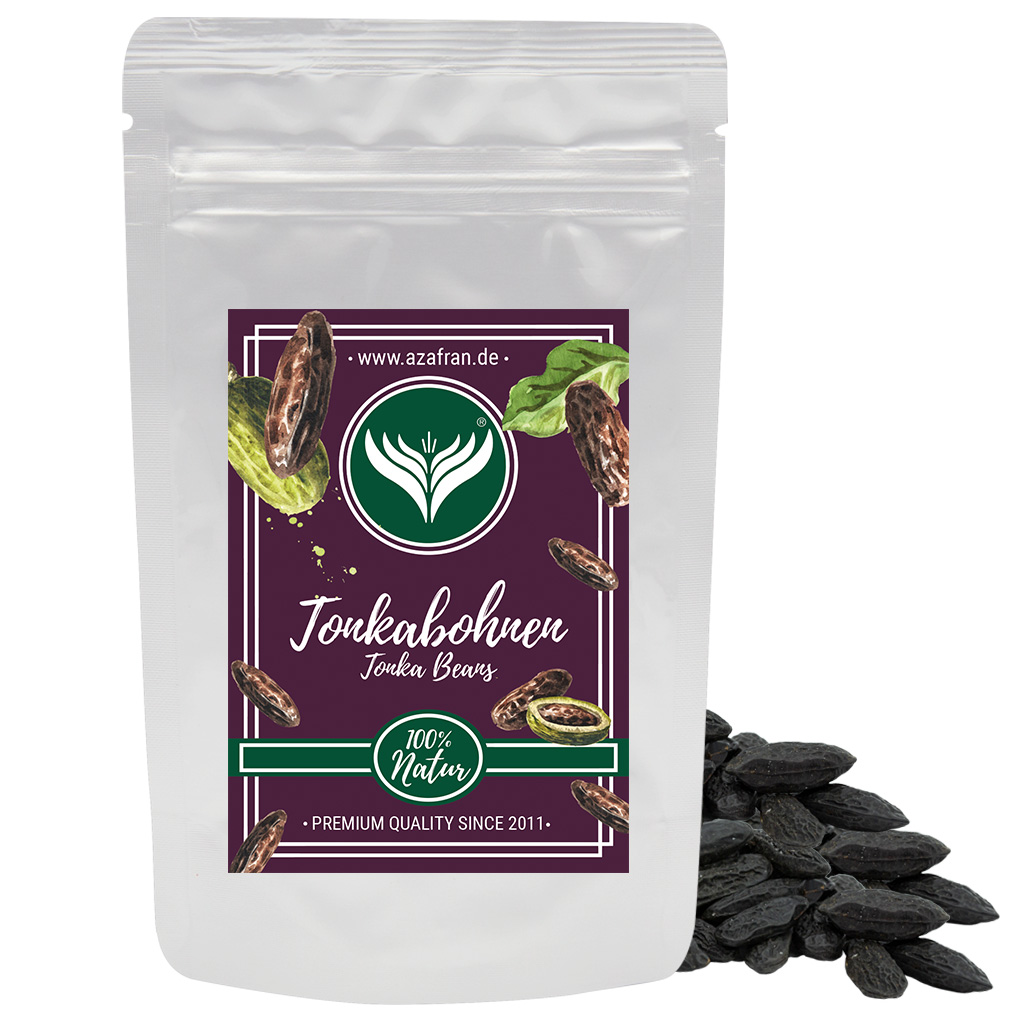 Vorsicht: Tonkabohnen enthalten auf natürliche Weise Cumarin (ca. 2%), welches nicht in großen Mengen konsumiert werden soll. Essen Sie also niemals eine ganze Bohne und gehen Sie lieber sparsam damit um.