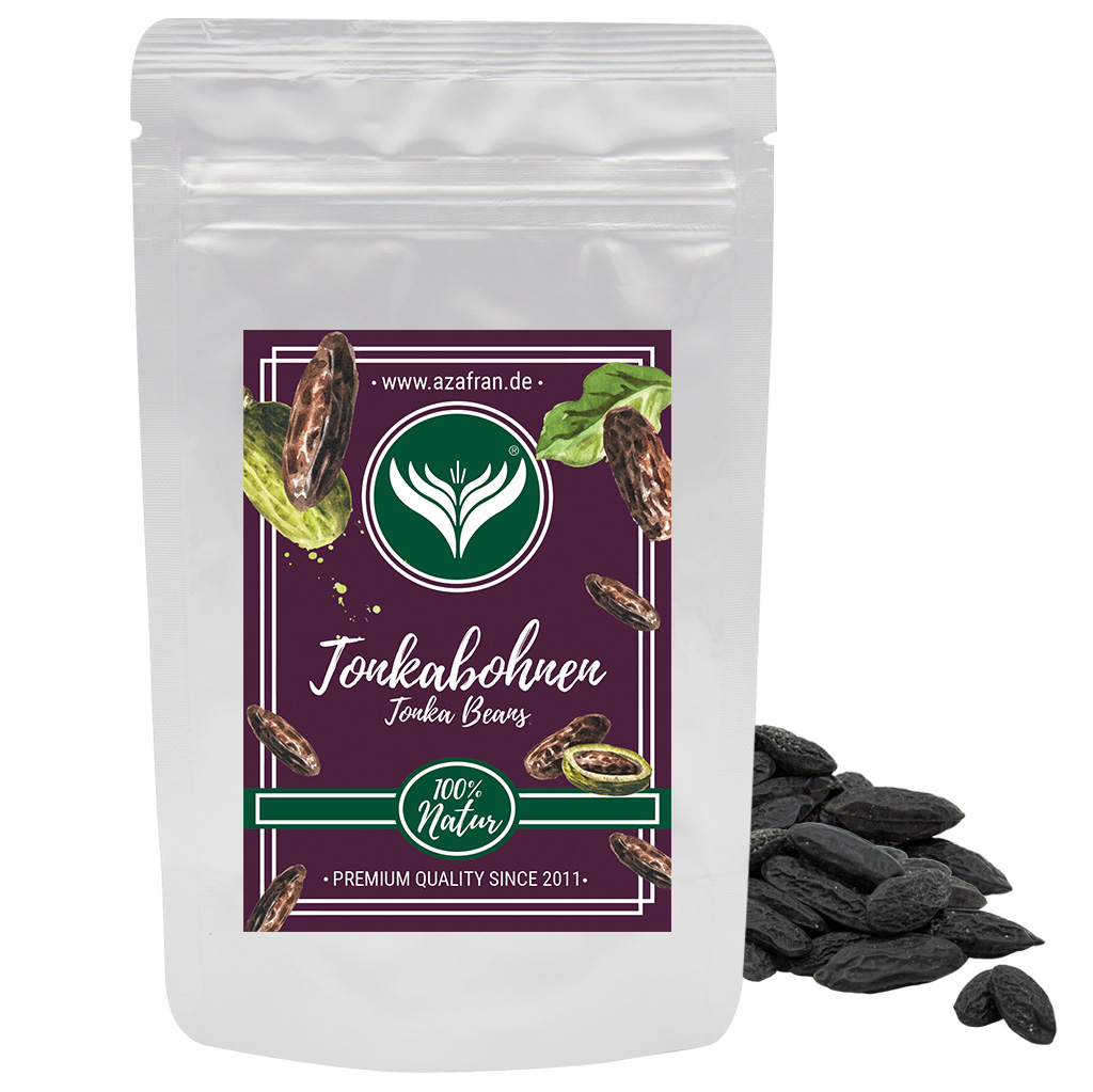 Vorsicht: Tonkabohnen enthalten auf natürliche Weise Cumarin (ca. 2%), welches nicht in großen Mengen konsumiert werden soll. Essen Sie also niemals eine ganze Bohne und gehen Sie lieber sparsam damit um.